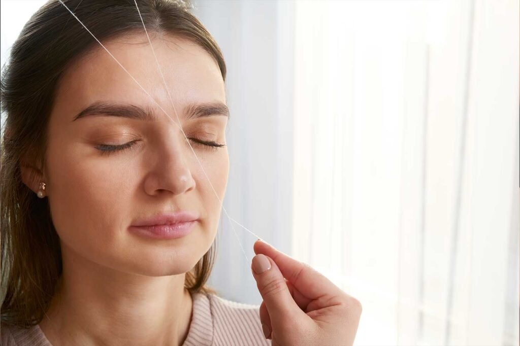 Done rightly, threading is a painless form of hair removal, most often used for precision shaping of eyebrows and to remove facial hair. Cotton thread is twisted and then rolled over areas of unwanted hair, plucking the hair at the root. It has the advantage of removing the fine hair that eludes tweezers with any hair removed not reappearing for up to 8 weeks.