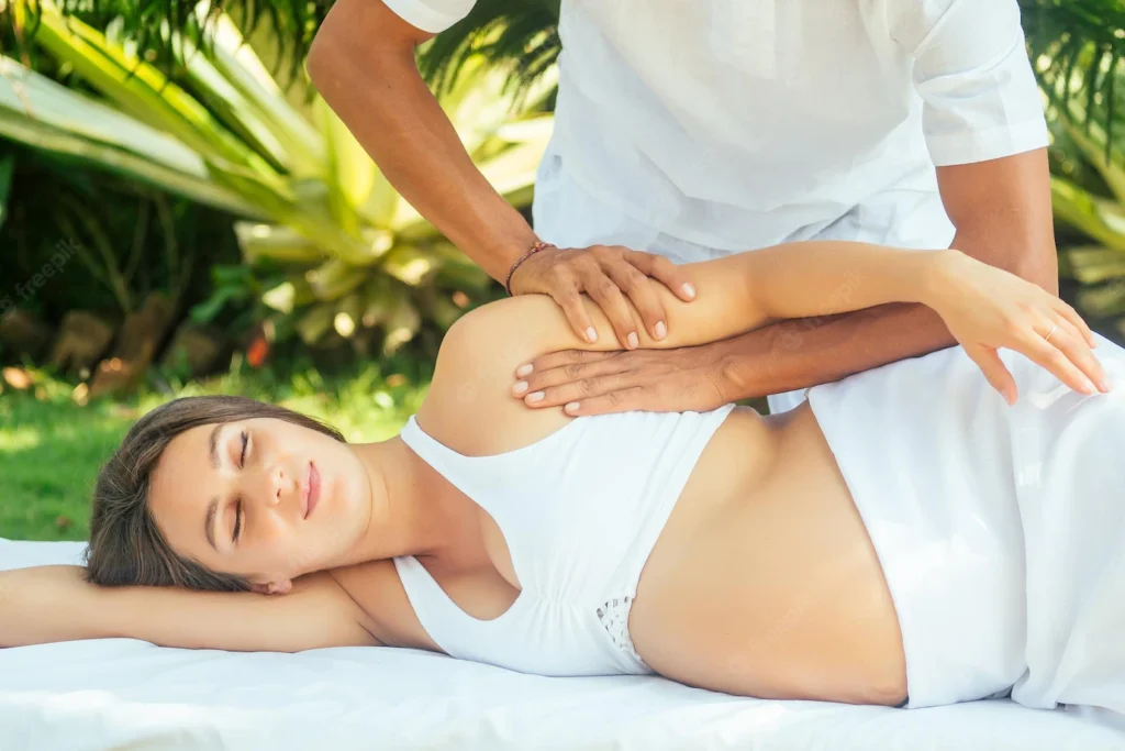 A pregnancy massage is a specially adapted gentle and soothing massage tailored specifically for the mother-to-be. As a term, āpregnancy massageā applies to any hands-on massage treatment for a woman during her pregnancy. It can therefore vary enormously in terms of what it consists of. However, for many women, pregnancy massage benefits include easing aches and pains, as well as facilitating relaxation and preparation for labour.